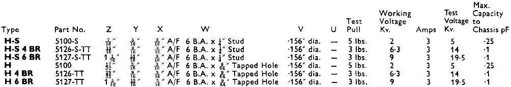 Stand-Off Insulators & Terminals - Type H-S to H 6 BR